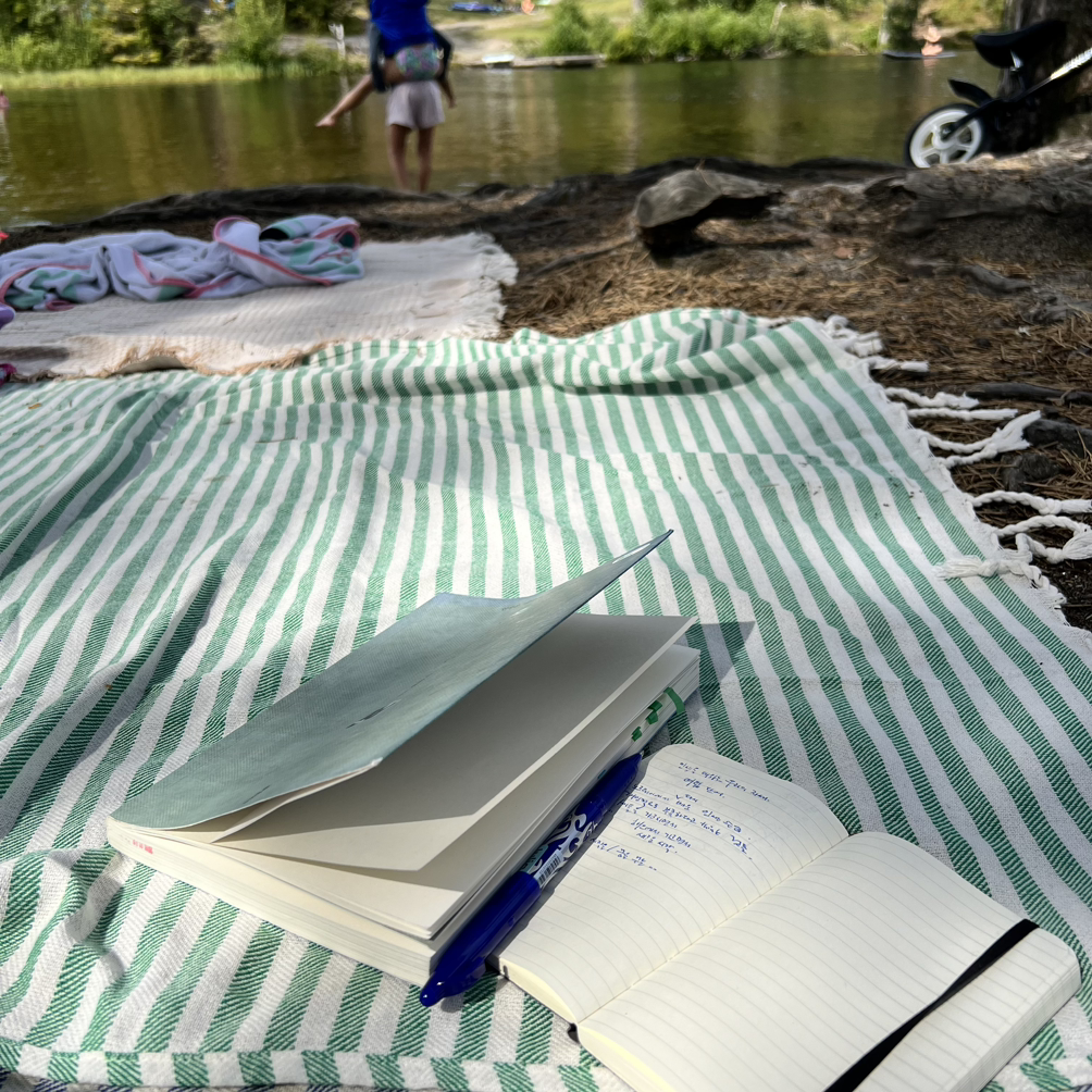 선선한 바람을 느끼며 수영을 즐기는 사람들을 보는 것만으로도 나는 충분히 Deilig 한 시간 속에 있었다. 내 손엔 책 한 권과 펜, 작은 작가 노트 하나.