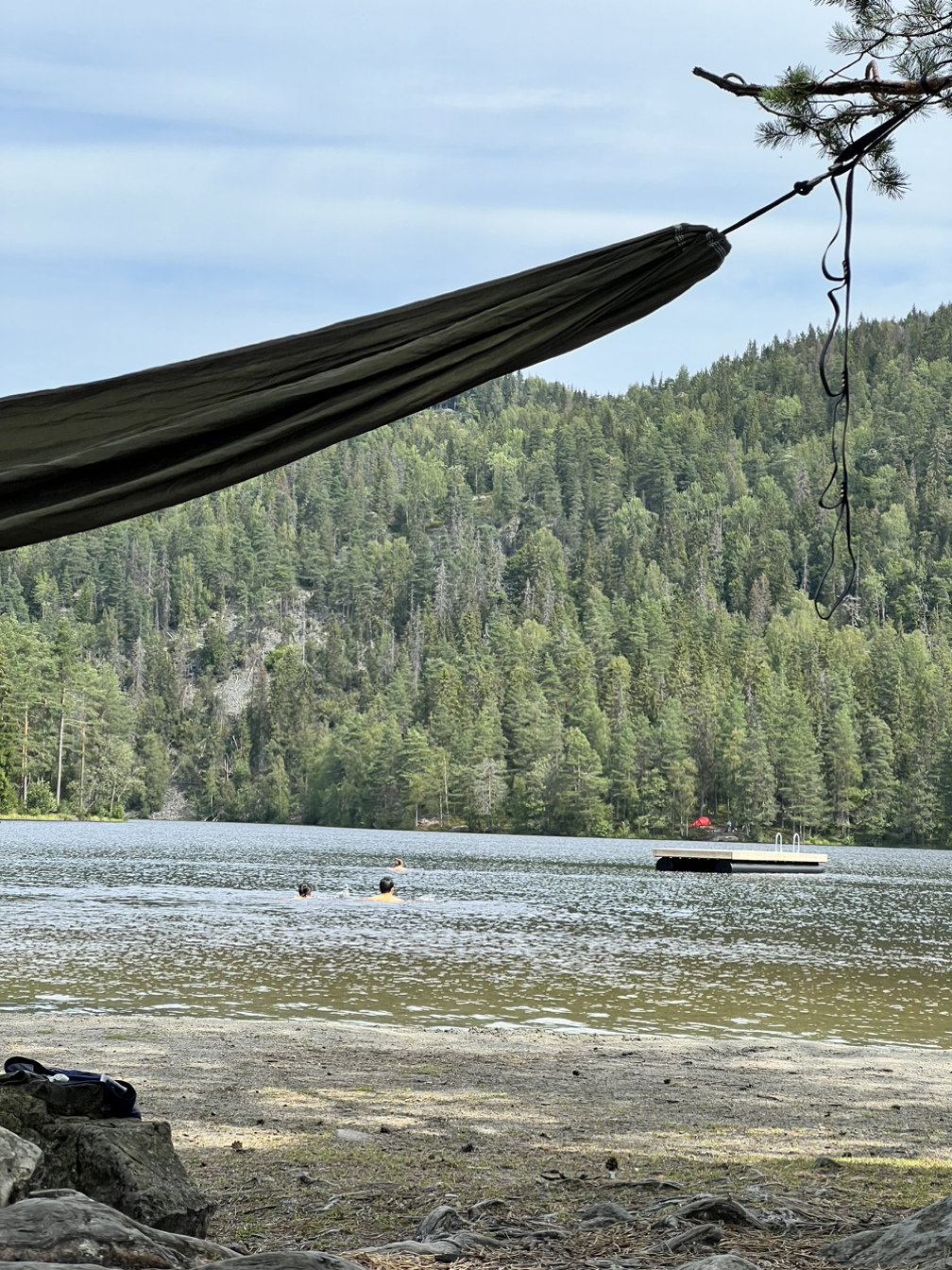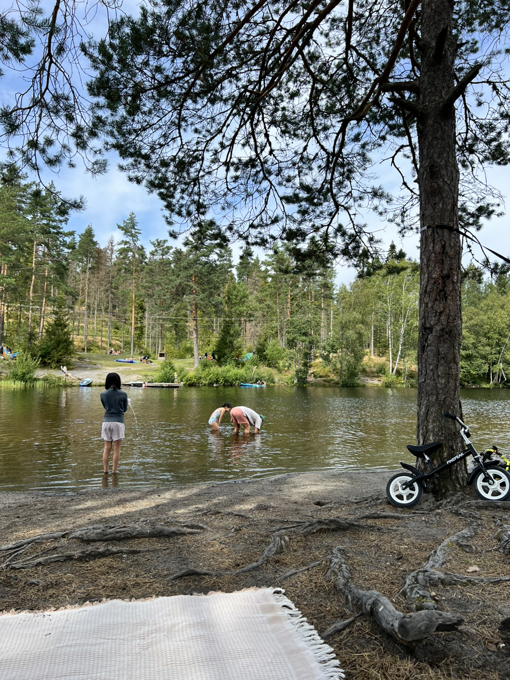 물만 보면 들어가야 하는 아이들을 따라 남편의 입수 준비가 시작되었다. '산에서 내려오는 물이라 꽤 차가울 텐데...' 노르웨이에서 10년을 살았지만 난 여전히 춥고 차가운 것이 싫다. 가까이서 또 멀리서 "Det er skikkelig kaldt. 데 아르 시켈리 칼트!" 진짜 차갑다는 말들이 여기저기서 들려온다. 물에 들어가지 않겠다는 생각을 굳히고 나는 내 나름의 쉴 준비를 시작했다.