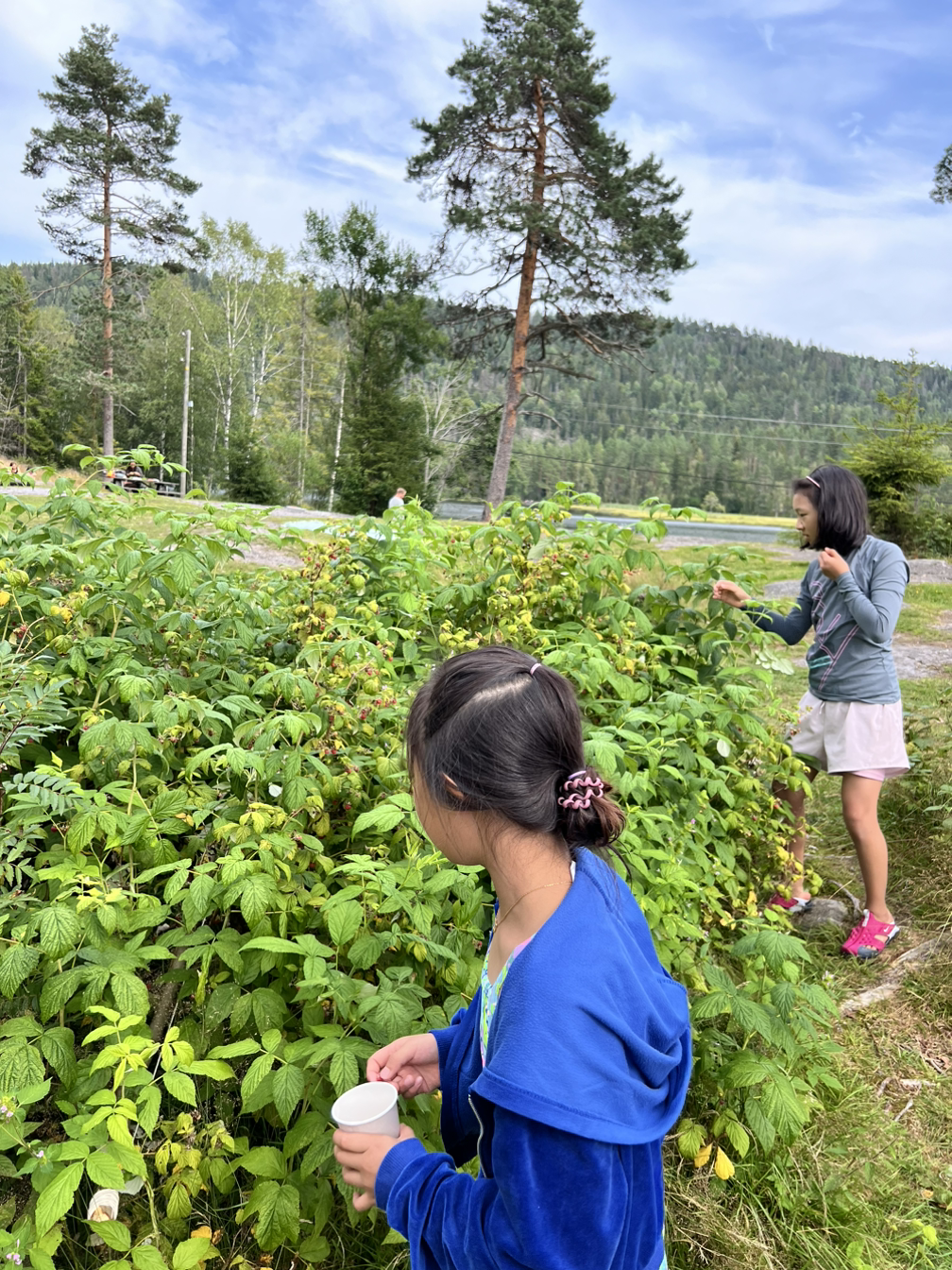 삼겹살 냄새가 다른 사람들에게 방해가 될까 좀 더 산속으로 자리를 옮겼다. GGGG지그을~~ 덴마크산 삼겹살을 안주로 먹으며 맥주 한 캔을 후딱 비웠다. 한국 라면까지 코스로 알차게 끓여 먹고서야 호수와 하늘, 노르웨이 숲이 다시 눈에 들어왔다. 아이들은 호수 주변을 맴돌며 산딸기를 따와서 내밀었다. 산딸기를 가득 손에 쥐어준 아이들은 다시 물가로 뛰어갔다.
