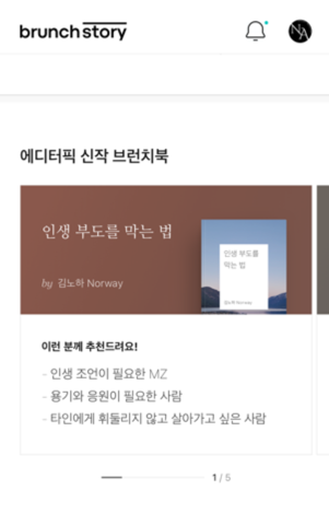 지난 10월 28일부터 저의 브런치북 <인생 부도를 막는 법>이 브런치 앱 상단에 소개되었어요. 그리고 그다음 날부터는 에디터픽 신작 브런치북에도 선정되었습니다.