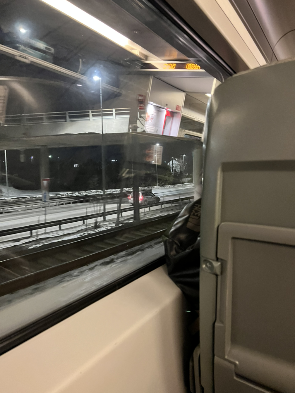 해는 지고 밖은 어두워졌다. 이제 설경은 보이지 않는다. 노르웨이 집들이 내놓은 노란색 빛들과 차들이 달리는 방향을 알려주는 전조등 빛만 아스라이 보인다. 달리던 기차는 나의 목적지를 30분 남겨두고 1시간 넘게 멈췄다. 시그널 문제가 있어서 해결하는 중이라는 방송이 나오고, 만약 고쳐지지 않으면 다음 역까지 버스를 타야 한단다. 나는 4시간 넘게 앉아 있었던 나의 몸을 가엽게 여기고 짐을 챙겼다. 배낭을 메고 외투는 손에 들고 카페 칸을 찾아가기로 했다. 비싸고 먹을 것이 없을 것이 뻔하지만 궁금해서 짧은 탐험을 가보기로 한다.