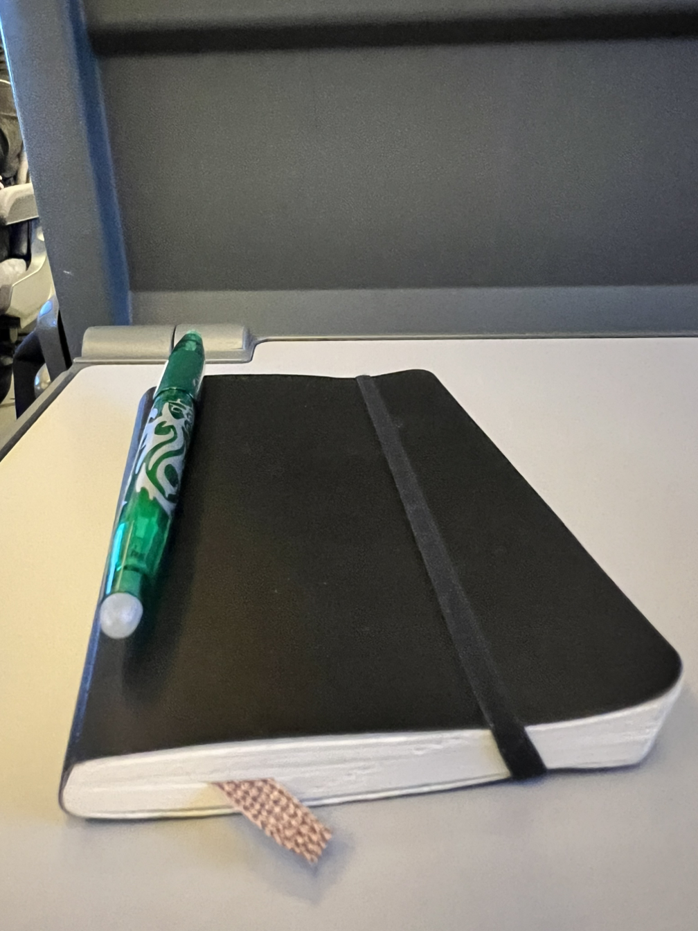 창가 쪽 자리였다면 겨울 왕국의 설경을 마음껏 즐길 수 있어서 좋았겠지만 창가 자리가 아니어서 내가 계획한 일에 집중할 수 있었다. 집 근처 역까지 4시간 50분쯤 걸리니까 오디오북 한 권은 다 들을 수 있을 것 같았다. 좁고 흔들리는 좌석에서 오디오북을 듣기로 한 것은 꽤 유리한 선택이었다. 가끔은 창밖도 보고 눈도 감을 수 있으니 말이다. 한 동안 작가의 문장에 귀를 내어주고 몬스킨 작가 노트와 지워지는 볼펜 끝에만 시선을 집중했다. 나에게 필요한 문장들, 꽤 탐나게 잘 적은 문장들, 떠오르는 글감들을 마구 적었다. 빈노트에 흐트러진 글씨가 채워지는 그 장면을 보고 있으니 참 좋다.