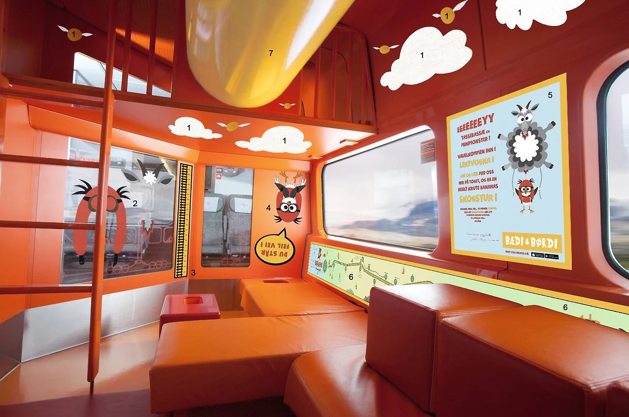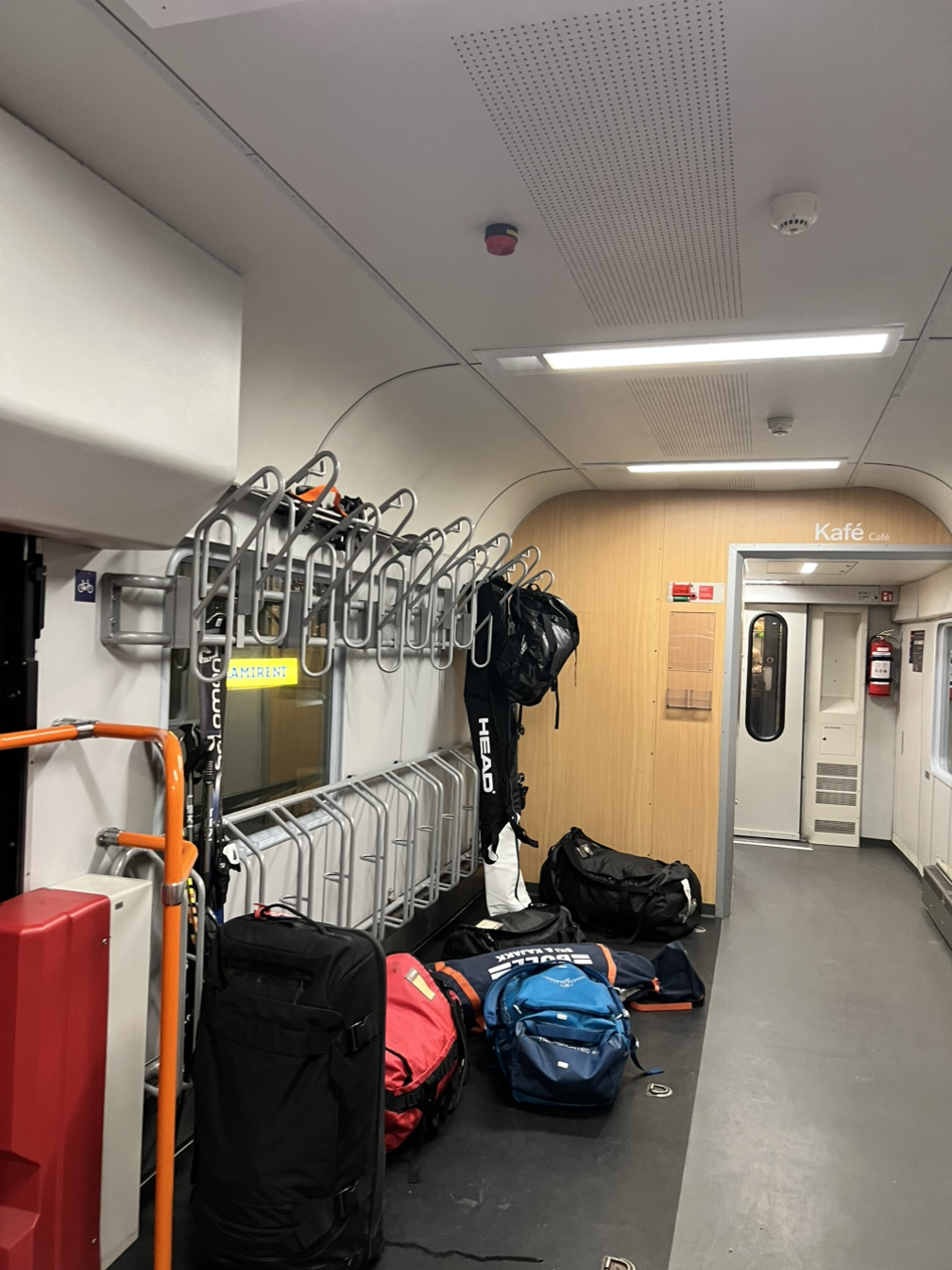 탐험을 떠나기 전 질문을 던져 본다. 사람들이 앉아있는 일반 승객칸을 지났다. 10대들이 신나게 게임을 하며 떠들고 있었고, 어른들은 하염없는 기다림이 지루한 표정이었다. 다음 칸은 Family 칸이었다. 들어가자마자 아이들 놀이공간이 보였다. 역시 노르웨이라는 생각이 들었다. 기차 칸 절반 가까이를 놀이방으로 만들어 두었다. 어린아이와 여행하는 부모들이 유모차를 좌석 옆에 둘 수 있게 좌석 사이가 꽤나 널찍하다. 놀이방에서는 아이들이 소란스럽게 뛰어놀고 있고 아빠들은 그 앞을 지키고 있다. 갓난 어린아이를 안고 수유 중인 엄마도 눈에 들어온다. 꽤 노르웨이적인 가족칸을 지나니 숙박이 가능하고 프라이빗하게 기차 여행이 즐길 수 있는 칸에 들어섰다. 여긴 꽤 럭셔리하다. 기차 안의 호텔 같은 느낌. '다음엔 베르겐까지 야간 기차 여행을 해 볼까'란 생각이 잠시 떠오른다. 다음 칸은 스키와 캐리어들을 위한 칸이었다. 여름이면 자전거로 가득 찰 공간이다. 노르웨이는 사계절 스포츠의 천국이다. 드디어 목적지인 카페 칸에 왔다. 메뉴판을 들여다보니 빵 하나에 2만 원, 샐러드도 가격이 사악하다. 다시 카페바 주변을 다시 둘러봐도 먹을 것이 없다. 노르웨이 여행에서 굶주림은 당연한 거라 생각하면서 기차 탐험을 마치기로 한다.