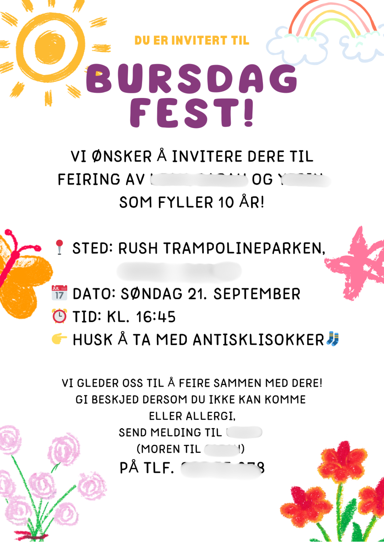 노르웨이 초등학교 아이들에게는 파티 문화가 있다. 얼마 전에는 핼러윈 파티를 했고. 곧 다가오는 크리스마스에는 크리스마스 파티가 예정되어 있다. 여름 방학 전에는 학기말 쫑파티를 한다. 학부모가 주최하기는 하지만 매년 이 세 가지 파티는 학교의 협조를 받는다. 그래서 선생님이 직접 학급 아이들에게 초대장을 나눠주신다. 그리고 이 세 가지 큰 파티들 사이사이 비공식적으로 학급 친구들의 생일 파티가 있다.