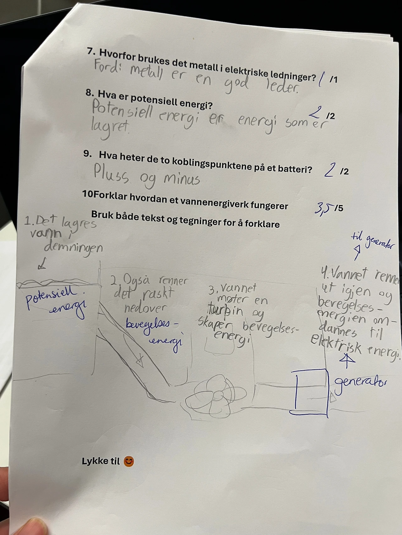 시험지를 넘기다 보니 또 하나 흥미로운 점을 발견했다. 바로 “그림과 글을 모두 사용하시오(Bruk både tekst og tegninger)”라는 문제가 반복해서 등장하는 것이다. 이러한 평가 방식은 글쓰기에 서툰 아이들에게도 ‘나도 알고 있다’는 것을 증명할 기회를 줄 수 있겠다는 생각이 들었다. 다양한 표현 방식을 허용함으로써 아이들의 ‘학업적 자기 효능감’을 지켜주는 배려인 셈이다.