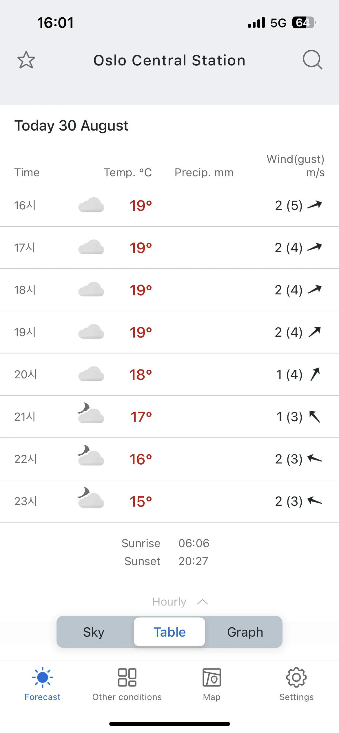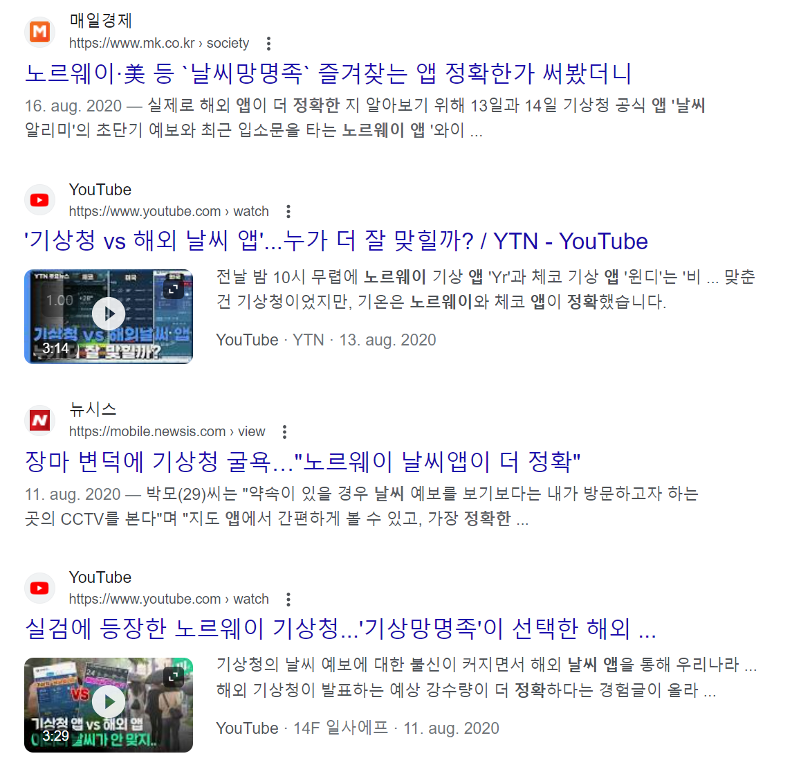 노르웨이에선 YR이라는 날씨 앱이 있는데, 선생님이 매일 아침마다 습관적으로 열어보는 앱이기도 해. 꽤 정확해서 한국 일기 예보보다 YR 앱이 정확하다는 기사를 작년에 본 적이 있어. 한국의 날씨 망명족들이 쓴다고 하더라.