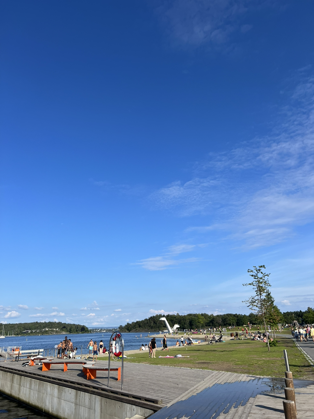 노르웨이 사람들은 날씨가 좋은 날엔 바깥 활동을 하기 위해 일찍 일을 마치기도 하고 휴가를 쓰기도 해. 날씨가 흐린 날, 잠깐 해가 비칠 때는 햇볕을 쬐기 위해서 하던 일을 멈추고 테라스에 나가서 한 동안 시간을 보내기도 하고.