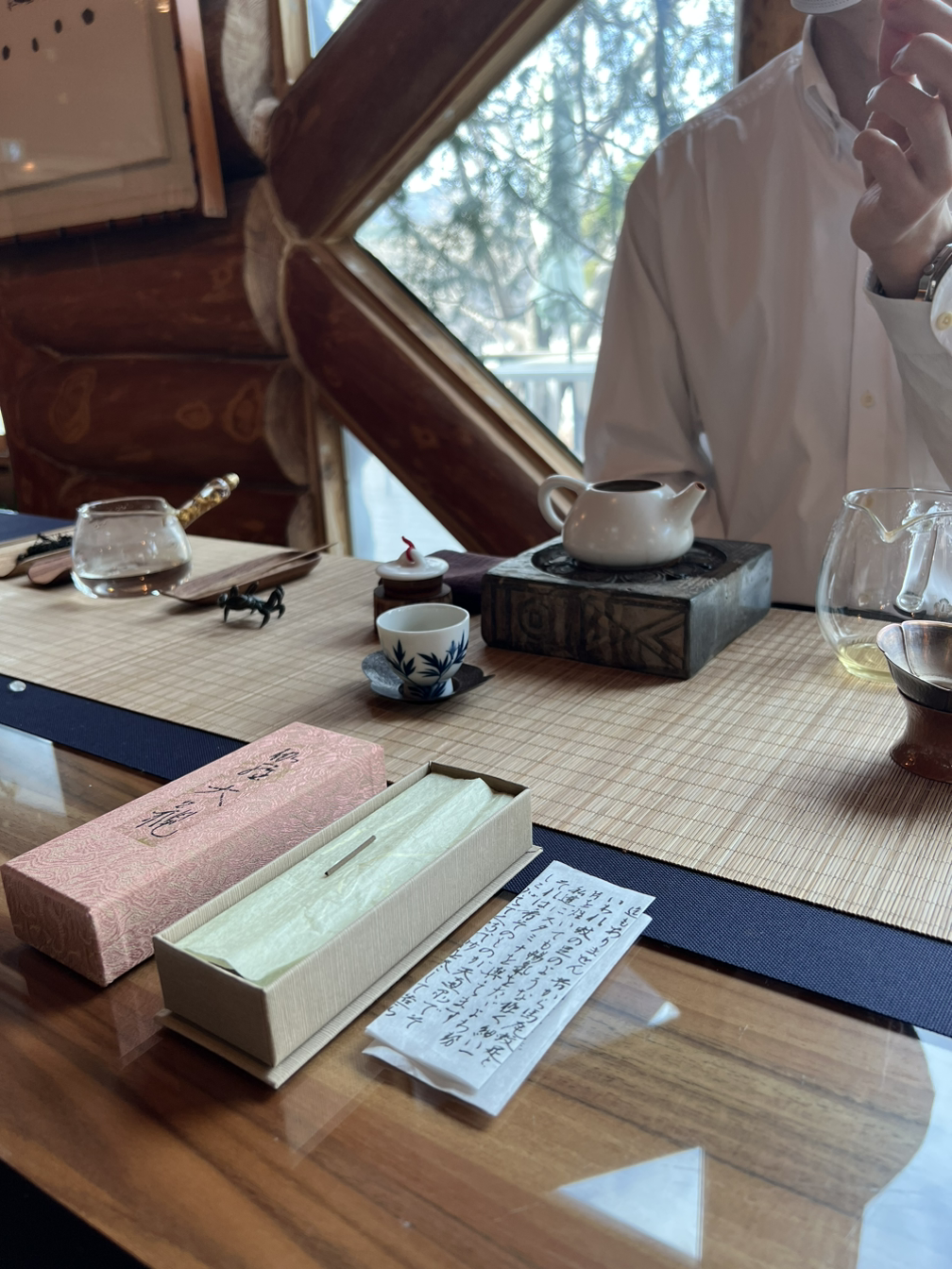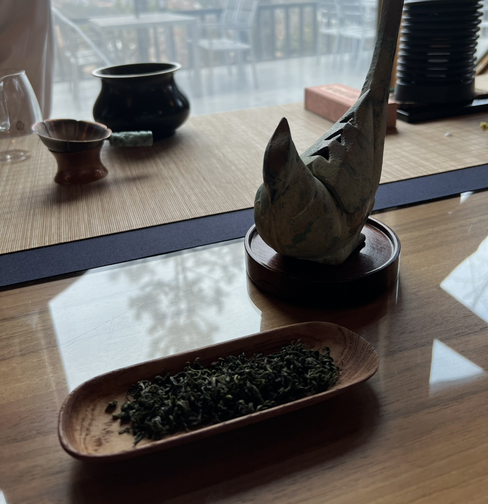우리는 귀하게 구했다는 차의 향과 맛, 그림 같이 예쁘게 빚어낸 전통 디저트의 모양과 맛에 취했다. 우리 앞에 가느다란 향의 연기까지 피어올랐다. 오감이 가득 예민해지는 시간을 즐겼다.
