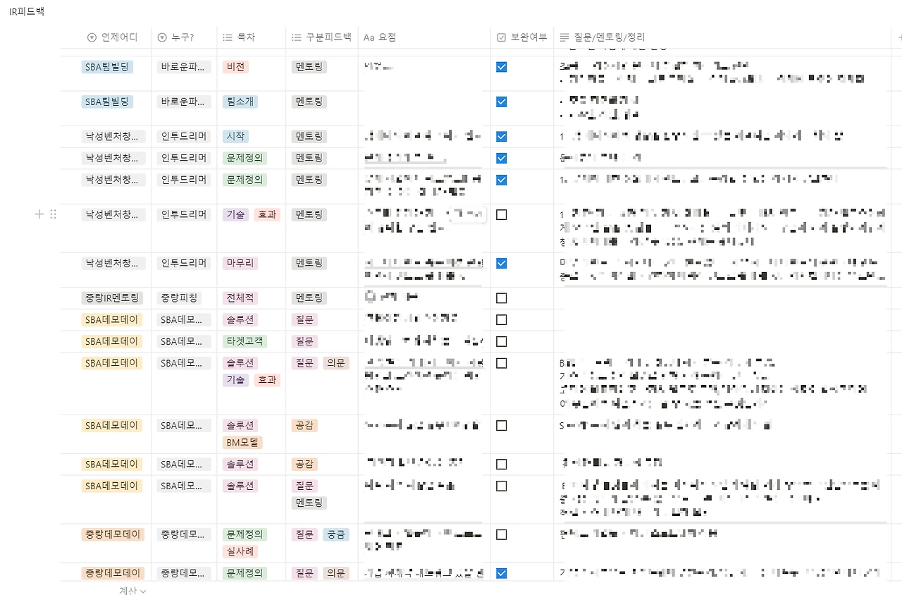부정적 질문, 궁금하신 질문, 긍정적 견해를 구분하고, 각 장표와 연결된 내용을 Notion에 정리하고,