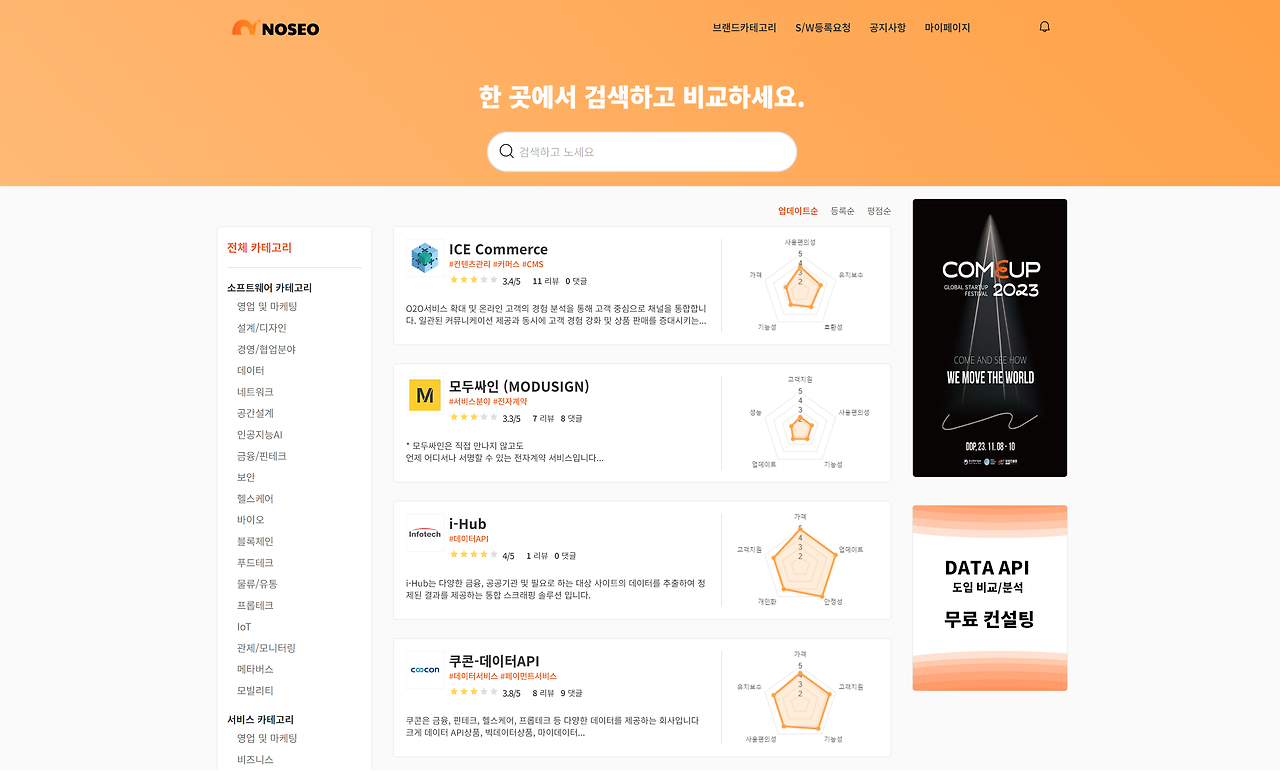 B2B 소프트웨어 파트너를 찾는 가장 빠른 방법. 한 곳에서 빠르고 쉽게 솔루션과 리뷰 검색이 가능합니다. 소프트웨어 정보를 한 번에 비교하고 노세요.