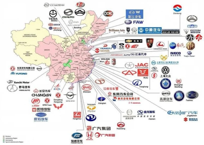 위치를 살펴보면 베이징 – 산둥 지역 / 상하이 지역 / 광저우 지역 등 산업이 많이 발달된 동쪽 해안가를 중심으로 자동차 산업이 밀집되어 있음을 알 수 있습니다. 북경에서는 택시로 현대차가 팔리고 상해에 가면 폭스바겐 택시들이 즐비한 이유도 각 지역별 메이저 회사들이 본인 성도 내 판매를 주도하고 있기 때문입니다.