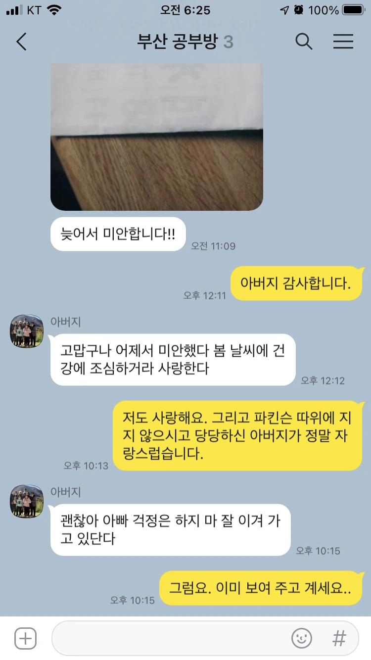 글을 보내고 늦어서 미안하다며 사랑한다는 아버지 문자에 가슴이 먹먹했습니다. 그래서 저도 아버지가 자랑스럽다고 답을 해 드렸어요. 인생을 재밌고 맑고 바르게 살아야 할 이유를 하나 더 찾았습니다.