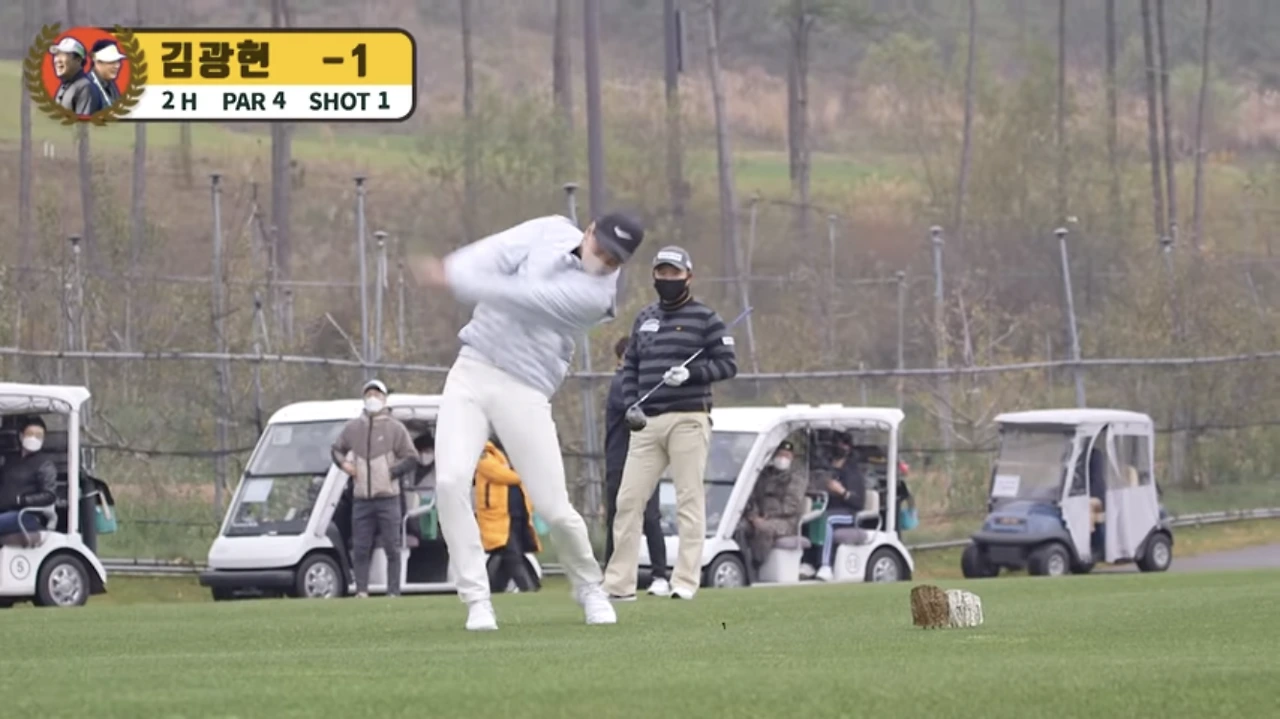 같이 라운딩을 했던 다른 고수님의 스윙을 보니까 제가 왜 슬라이스가 나는지 금방 차이가 보였습니다. 일단 저는 백스윙을 높이 듭니다. 임진한 프로님이 최근 유튜브 레슨에서 백스윙을 해서 가볍게 내려서 어깨에 있으면 된다고 했는데 저는 어깨보다 조금 더 위에 있었습니다. 마치 야구 배트를 드는 것처럼 높이 들고 있는 거죠.