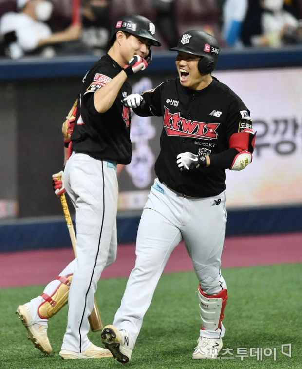 인상적이었던 것은 6대3으로 쫓기던 순간에, 박시영이 올라와 김재환을 잡고 양석환을 상대해야 하는 순간이었다. 아 투수 교체하려나 했었는데 이강철은 그냥 이런저런 한 마디하고 내려 갔고 배터리는 낮은 슬라이더로 양석환을 가볍게 요리하고 내려갔다. 롯데 시절 잘 던지다가도 한번에 무너지던 박시영은 KT에 가서 그렇게 철벽 불펜이 되었다. 그리고 그 뒤에는 이강철이 있다.
