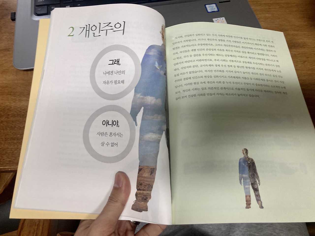 내 주장을 강요하는 것과 나의 생각과 다른 사람과 토론하는 것은 다르다는 것을 가르쳐 주기에 좋은 기회다 생각이 들어 수인이에게 권했다. "수인아. 우리 사회는 따로 과외하지 말고 이 책 가지고 아빠랑 한 주제씩 토론을 해 보면 어떨까?"