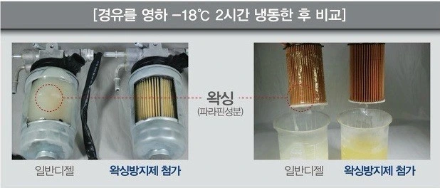 만약 철원이나 대관령에 놀러 갔다가 이른 새벽 아침에 갑작스레 엔진은 도는데 점화가 되지 않아 시동이 걸리지 않는다면 당황하지 말고, 일단 키 온을 한 상태에서 차를 5분 정도 둬서 필터 내 히터가 작동되도록 기다렸다 다시 걸어 보자. 날이 밝고 조금 온도가 올라갈 때까지 기다렸다가 걸어 보시거나 주유소가 근처라면 현지 디젤 연료를 받아서 주유하신 후 Key on 하고 두시면 혹한지 연료에 들어가 있는 융해제 덕분에 막힌 필터가 뚫리기도 한다.