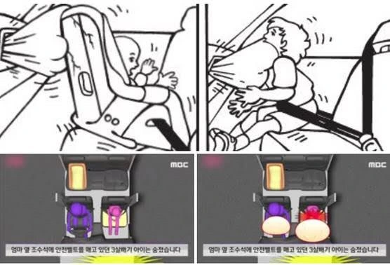 가족들과 차를 타고 가다 보면, 아이들이 앞자리에 앉겠다고 떼를 부리는 경우가 종종 있다. 아무래도 뒷좌석에 비해서 탁 트인 시선에 카오디오도 마음대로 조작할 수 있고, 운전하는 아빠와 수다 떨기도 좋으니 그 마음이 이해가 간다. 그렇지만 사고는 예상치 못하는 순간에 찾아오는 법이고 모든 아빠가 마이클 같은 팔뚝은 없는 법이다. 아이들이 싫어해도 뒷좌석에 앉혀야 하는 데는 이유가 있다.