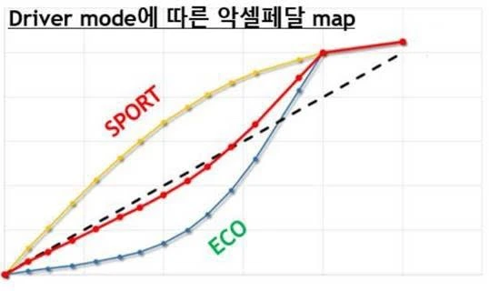 Normal / ECO / Sport 모드에 따라 같은 페달 밟기에도 엔진에 내는 토크가 차이가 난다.