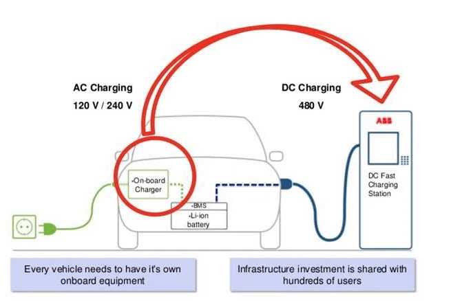 대신에 DC Charging이라는 급속 충전기의 발전이 지금은 대세입니다. 전기차에 들어가는 모터와 배터리는 정밀한 제어를 필요로 하기 때문에 직류식 전원을 사용합니다. 그래서 기존의 상용 교류 전원으로부터 전력을 공급 받으면 OBC라고 하는 장치를 통해 교류를 직류로 전환한 이후에 충전을 하는데 이런 방식으로는 300~400 km를 주행하는 충전을 하는데 4시간은 족히 걸립니다.