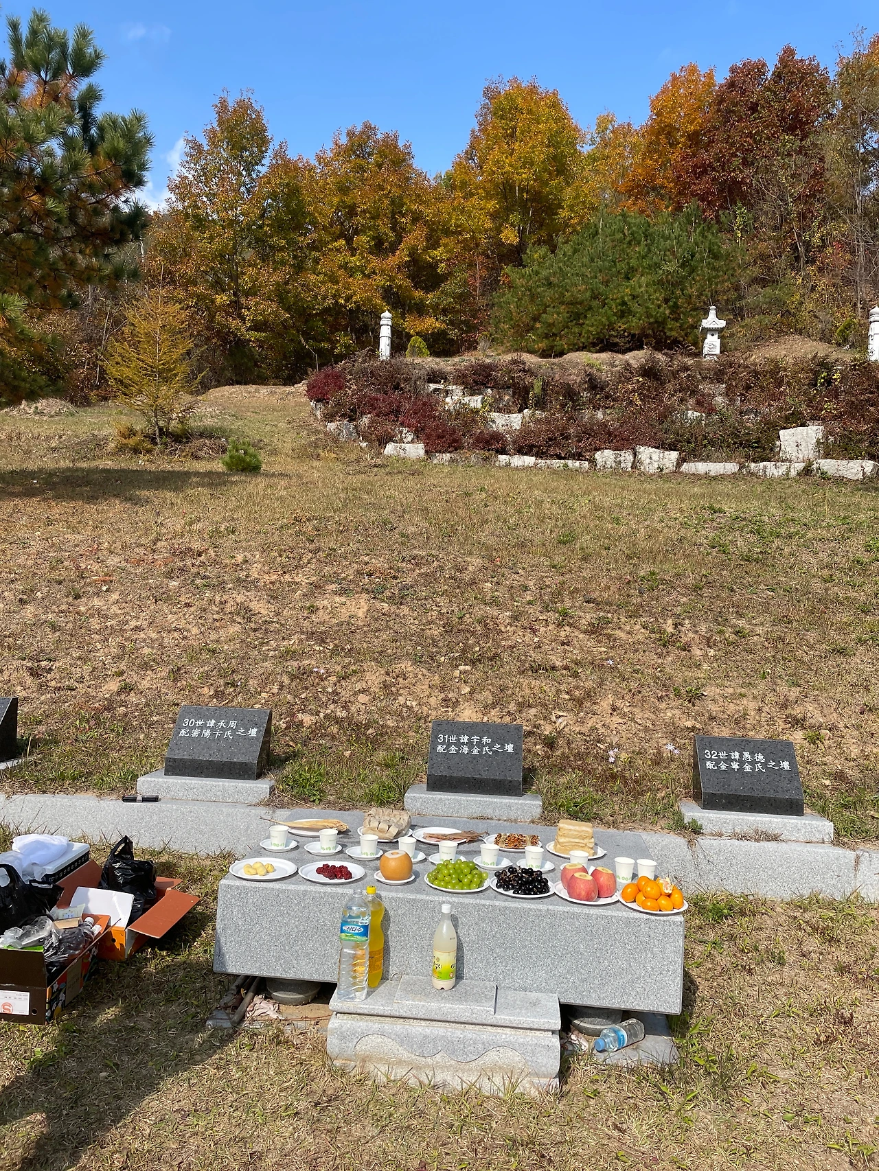 그렇게 10월 29일 토요일 아침이 밝았다. 동생과 큰딸과 새벽부터 달려서 오전 11시 즈음 거창에 도착했다. 며느리들 힘들게 하는 제사 다 없애고 간소화하시겠다고 결심하신 부모님은 모사도 간소하게 차리셨다. 따뜻한 가을볕이 한가득한 할머니 할아버지 산소에 인사를 드리고 나니 마음이 따뜻하고 힘이 났다.