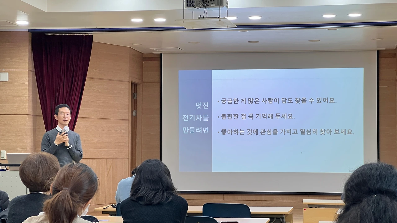 그렇게 두 행사를 싱크 시키면서 강의를 하기로 정해졌다. 주제는 회사 있을 때 강연했던 "전기차"에 대한 내용을 어린이용으로 쉽게 정리했다. 3학년인 둘째 앞에서 리허설도 마쳤다.