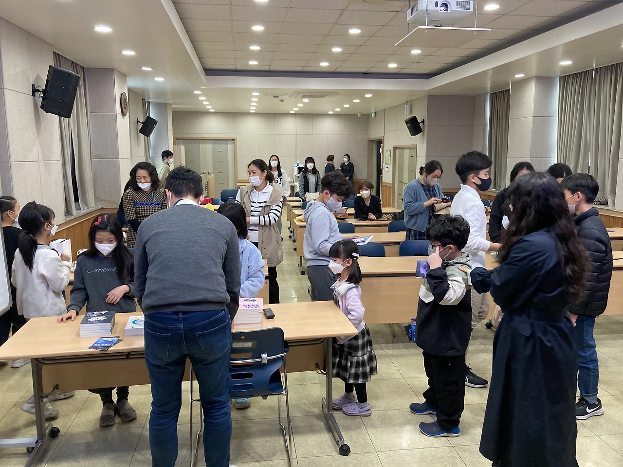 그래도 초롱초롱한 눈으로 이런저런 질문을 하던 아이들이 너무 반가웠다. 문제를 내면 손을 들고 신이 나서 답변한 친구들에게는 젤리도 주고, 강의 마치고 나서는 주최 측에서 준비한 책도 나누어 주었다.