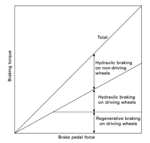 어떤 모드에 관계없이 일정한 브레이크 성능을 유지하기 위해서는 배터리 충전을 위해 발전량과 실제 물리적으로 브레이크 패드를 통한 구동력을 함께 제어해야 한다. 이를 위해 모터를 통해 유압 제동을 담당하는 전자식 브레이크 제어기 (EBS - Electric Brake System)와 하이브리드 시스템 제어 장치 (HCU - Hybrid Control Unit) 간의 긴밀한 협조가 필요하다.