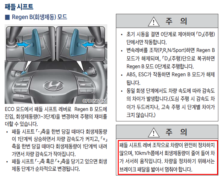 액셀에서 발을 떼고 관성 주행을 할 때도 엔진 브레이크와 유사한 충전을 해지만 본격적인 회생 제동은 브레이크를 밟아야 이루어진다. 충전이 되려면 충분한 운동에너지가 있어야 하기 때문에 막히는 길보다 속도가 충분하고 가끔 멈추기도 하는 국도가 유리하다.