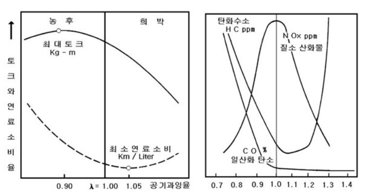 연료보다 공기를 많이 넣으면 일단 연료는 다 쓰게 된다.