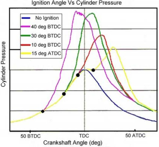 보통 점화 시기는 압축 과정에서 피스톤이 제일 높은 지점인 상사점 (TDC - Top Dead Center)에 도달하기 전에 일어난다. 점화를 일찍 할수록 연소를 통해 일어나는 온도 압력 상승과 압축을 통해 일어나는 상승이 중복되어서 실린더 내에 온도와 압력이 가파르게 상승하게 된다.