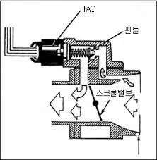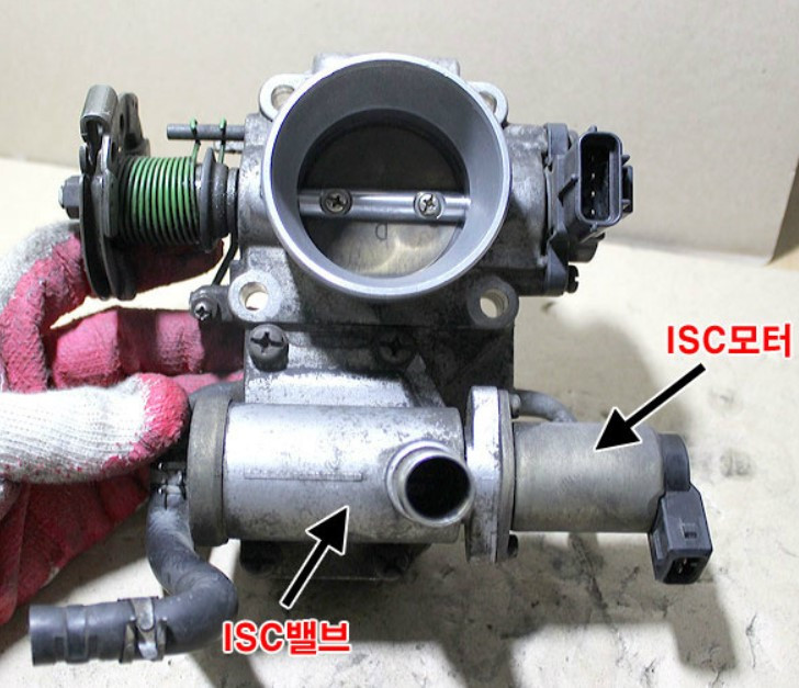 저속의 RPM을 유지하는 데는 많은 에너지가 필요로 하지 않는다. 그런 미세한 공기량을 제어하는 것은 쓰로틀 밸브 만으로는 어렵기 때문에 ISC라고 하는 바이패스 장치가 붙어 있다. 가끔 쓰로틀 날개에 타르나 이물질이 껴서 소량의 공기량을 제어하지 못하면 Idle RPM이 불안정하기도 하는데 쓰로틀 밸브 챔버를 세척해 주면 개선된다.