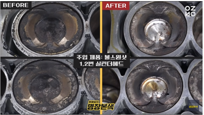 엔진 내부의 카본 성분들도 마냥 깨끗하게 벗겨 낸다고 해서 엔진에 유리한 것은 아니다. 반복되는 연소 과정에서 카본 성분은 피스톤과 실린더 벽면을 보호하는 커버 코팅의 역할도 한다. 그걸 갑자기 제거하면 오래된 미술품을 복원한다고 화학처리했다가 망칠 수 있는 것처럼 엔진에 손상을 줄 수 있다.