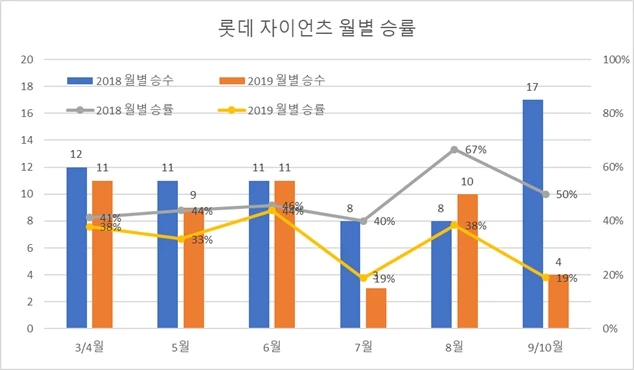 리그 일정 전체가 줄어 들면 체력 관리 측면에서 유리하지 않을까 생각할 수도 있는데 사실 큰 이점은 잘 모르겠습니다. 하도 “봄데”하니까 롯데는 봄에 잘 하는 줄 착각하곤 하는데 사실은 롯데는 봄부터 못합니다. 그리고 손발이 맞아 가서 6월에 탄력 받으려고 하면 투수 진에서나 야수진에서 주축 선수 부상 (2018년 박세웅 / 전준우, 2019년 민병헌) 으로 전력이 약해집니다. 그런데 백업 Depth가 약하고 신인급들 특히 6월에 조금 달린다고 무리했던 불펜진의 체력이 고갈되면서 7월에 곤두박질 칩니다. 재작년에는 그나마 후반기에 재정비하고 쫓아 가 보려고 했었는데 미치지 못했구요. 작년은 양상문 감독 사퇴 이후 다들 몸 사리느라 추가 동력 조차 없었습니다.
