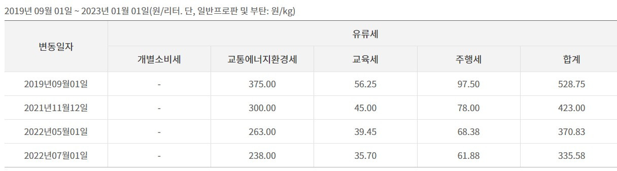 유종에 따라 상황이 다르고 그래서 붙는 세금도 차이가 난다.