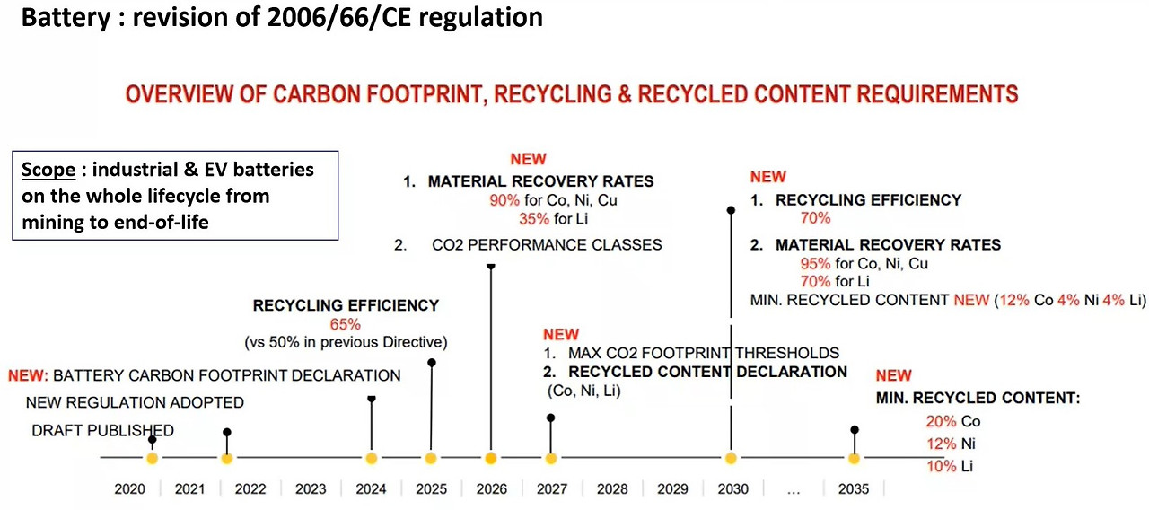 전기차가 진짜 친환경적인 차량으로 거듭나려면 이렇듯 Life Cycle 단계 모두에서 발생하는 CO2 양을 줄이는 노력이 필요하다. 유럽에서는 제조에서 폐차까지 발생하는 CO2 총량을 제한하는 규제가 이미 실행 중이다. 2024년까지 배터리 재활용률이 65%를 넘겨야 하고, 코발트나 리튬 니켈 같은 원재료들 중 10% 이상을 재활용한 재료로 사용하도록 의무화하고 있다.
