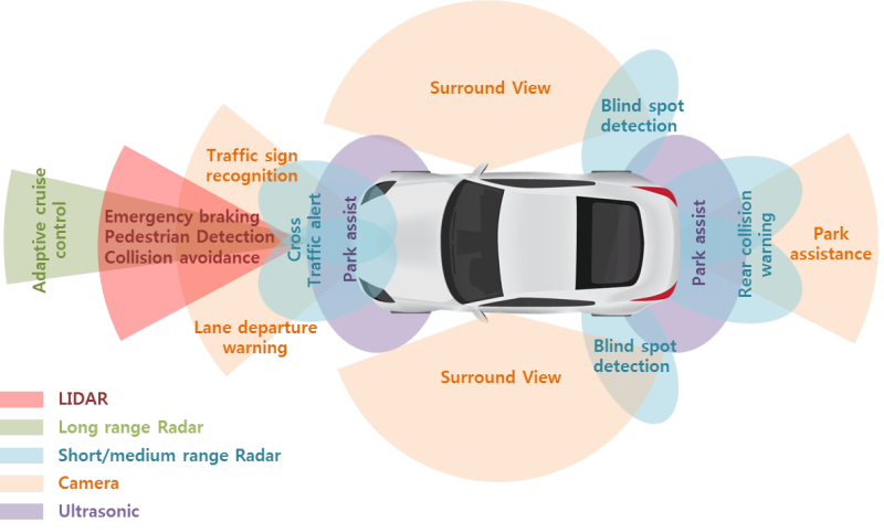 이에 반해 센싱과 인지-판단의 영역은 아직도 풀어야 할 숙제들이 많이 있다. 센서들마다 측정하는 방식이 다르고 커버할 수 있는 범위와 신호의 신뢰도도 차이가 난다. 우리가 눈을 통해 보는 시각적인 정보들이 불완전하기 때문에 이를 보완하기 위해 인간은 AI보다 몇 배나 강력하고 효율적인 뇌를 이용해서 각종 추측과 판단은 하면서 운전을 수행한다. 인간처럼 작은 눈(센서)을 큰 뇌(인공지능)로 커버할 것인지, 아니면 상대적으로 기능이 작은 뇌를 큰 눈으로 커버할 것인지는 자율 주행을 개발하는 각 주체들마다 선택이 다르다.