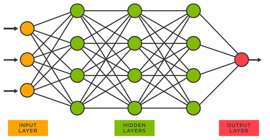 인공신경망은 입력층(input layer)과 은닉층(hidden layer) 그리고 출력층(output layer)으로 구성된다. 은닉층은 필요에 따라 여러 층을 쌓아줄 수 있는데 각 층마다 여러 개의 노드(뉴런)들로 구성되어 있고, 서로 연결되어 있다. 각 연결마다 그 강도를 가중치에 따라 결정해 주는 데 한 노드와 또 다른 노드 사이의 가중치가 크다면 서로 강하게 연결되어 있는 것이고, 작으면 약하게 연결되어 있는 것이다.