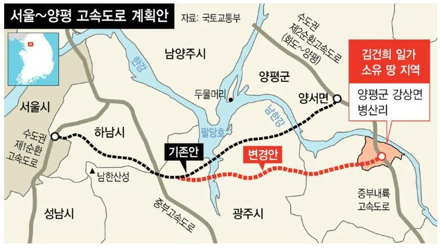 양서면 주변에는 민주당 사람들 땅이 있는 것도 사실이고, 민주당이 양평군 주민 의견 반영해서 IC를 건설해 달라고 요청한 것도 사실이다. 그렇지만, 그건 이미 십여 년 전부터 계획된 노선을 정하는 것과는 아무런 연관이 없다. 2020년에 귀촌하려고 땅을 산 김부겸 국무총리가 2010년부터 양서면으로 고속도로가 나는데 관여하는 것은 말이 되지 않는다.
