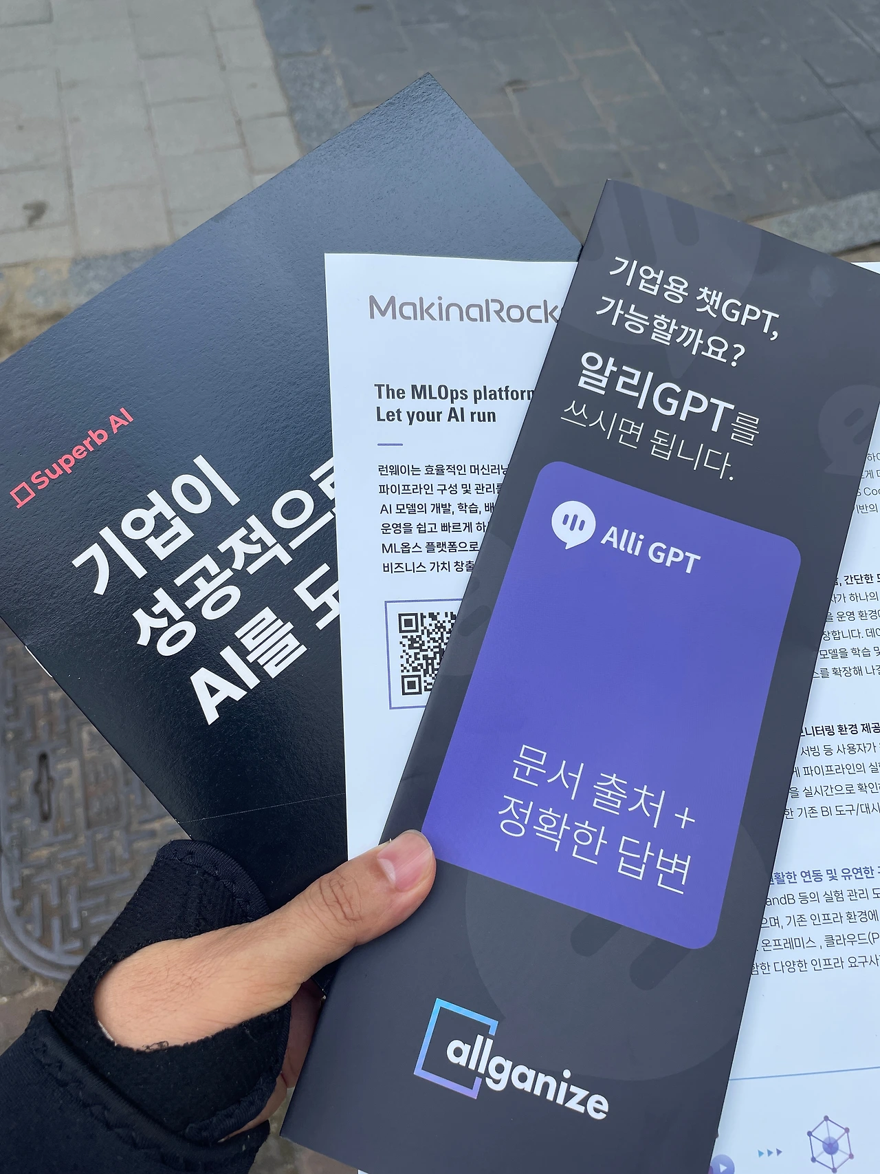 너무 기술적이지도 않고 또 그렇다고 너무 홍보적이지도 않아서 좋았다. 현장에서 부딪히는 해결해야 하는 문제들에 대해서 AI가 어떻게 도와줄 수 있고, 또 단순한 모델 구성이 아니라, 데이터 파이프 라인을 만들고 좋은 데이터를 고르고 의미 있는 결과를 도출해 내고자 하는 고민들이 느껴졌다. 각 회사들마다 비전 / 제조 품질 관리 / 대화형 LLM 서비스 등의 강점들을 강조하면서도 B2B 사업을 하는 비슷한 회사로서의 공감대도 함께 볼 수 있었다.
