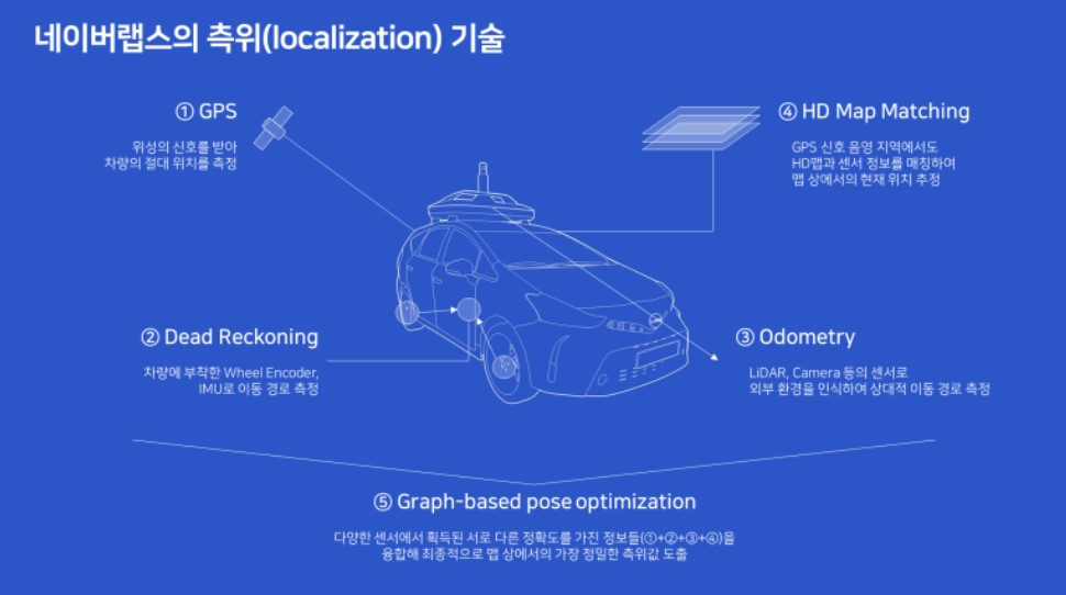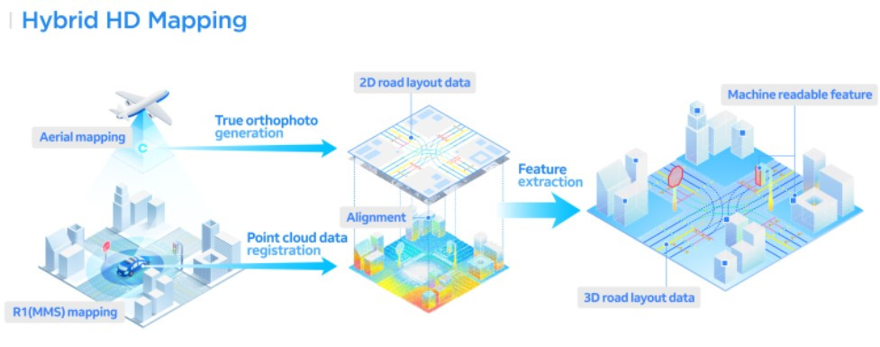 이런 고정밀 3차원 지도는 현실의 도로, 건물, 물체를 가상세계에 그대로 복제하고 실시간으로 업데이트하는 디지털트윈 기술을 통해 만들어지는데 사람보다는 인공지능에게 유용한 정보로 채워진다. 우리나라에서는 모바일 내비게이션 서비스를 제공하는 네이버와 카카오를 중심으로 항공사진을 분석해서 Road Layout을 구성하고, MMS (Mobile Mapping System) 차량으로 직접 달리면서 모집한 정보를 모아 3차원으로 구성하는 작업이 활발히 진행 중이다.