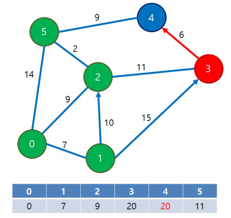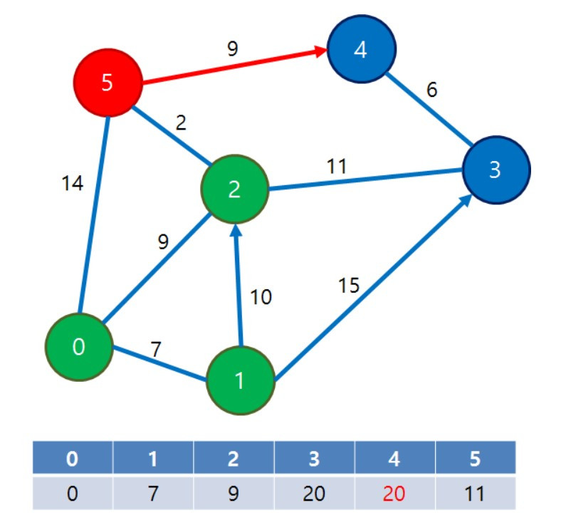 같은 방식으로 아직 방문하지 않은 정점들 중 거리가 가장 짧은 정점을 하나 선택해 방문하고, 해당 정점에서 인접하고 아직 방문하지 않은 정점들의 거리를 갱신해서 그중 가장 짧은 거리를 업데이트를 계속한다. 이런 방식으로 진행하면, 각 노드별로 최단 거리가 계산되고, 목적지에 도달하기 위한 최적의 경로들을 쉽게 찾아낼 수 있다.