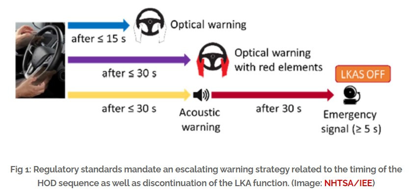 가장 기본적인 기능은 방향을 정하는 핸들이다. 차선 유지하는 LKAS 기능이 활성화되면 자동차가 알아서 핸들을 돌려 방향을 조정하지만, 운전자의 손은 항상 핸들 위에 있어야 한다. 주로 압전 센서나 핸들에 달린 토크 센서를 통해 인지하는데 15초 이상 손이 감지가 되지 않으면 일반 경고 메시지가 나오고, 30초까지는 빨간색 경고 메시지가 뜬다. 30초 이상 손이 감지되지 않으면 경고음이 울리고 1분 이상되면 LKAS 시스템의 동작이 멈추게 된다.