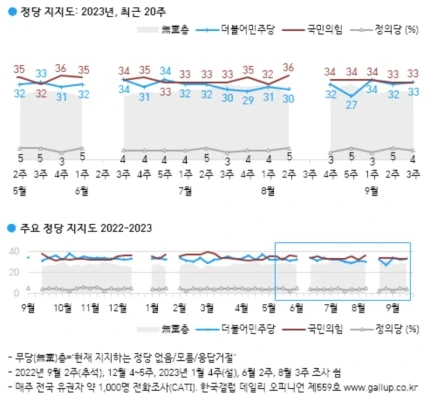 그리고 그 사이에 남은 40% 이상의 중도층은 갈 길을 잃어버렸다. 어느 당도 잘하고 있다가 30%대를 넘지 못하는 여론 조사는 극단으로 치달은 양당 정치 사이에서 마음을 정하지 못한 대부분을 대변해 주고 있다. (여론 조사 참여에 적극적이지 않는 성향을 고려하면 실제 바닥 민심은 절반 이상이라고 본다.)