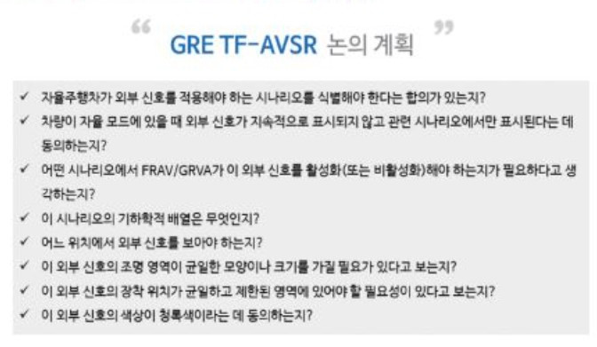 별도의 LED나 헤드램프를 이용해서 자동차 현재 자율주행 중임을 알리는 다양한 신호들도 시도되고 있지만 안전에 도움이 되는지는 연구가 더 필요하다. 아직 자율 주행 자동차에 익숙하지 않은 사람들은 오히려 너무 두려워하기도 하고, 지나가도 좋다는 자율주행 자동차의 신호를 맹신해서 다른 차들은 의식하지 않은 채 길을 건너는 행동 패턴을 보이기도 한다. 이런 오류를 막기 위해서 자율 주행 시대에 보행자와의 소통을 위한 신호를 표준화하려는 움직임이 유럽을 중심으로 시작되었다. 새로운 시대에 맞는 새로운 약속이 필요한 셈이다.