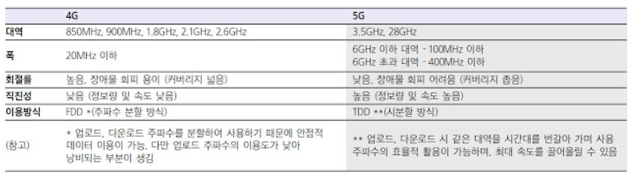 이런 추세를 반영해서 전 세계적으로 4G LTE에서 5G로의 전환이 이루어지고 있다. 5G와 기존 4G의 가장 큰 기술적 차이는 주파수다. 이전 세대에 비해 고대역 주파수인 밀리미터파를 사용하기 때문에 직진성이 높고 많은 데이터를 담을 수 있는 반면 도달범위가 짧은 것은 단점이다. 특히 이동속도가 빠른 자동차에서 끊김 없이 연결을 유지하기 위해서는 특별한 기술들이 필요하다.
