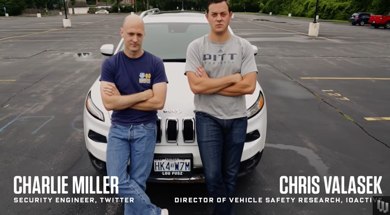 2015년 미국의 한 고속도로에서 달리고 있던 크라이슬러의 지프 체로키가 해킹을 당했다. 보안 전문가인 밀러와 발라세크는 지프의 인포테인먼트 시스템에 연결되어 있는 휴대전화 네트워크를 통해 자동차에 대한 접근 권한을 획득하고 제어권을 탈취하면서 원격 제어에 성공했다. 내비게이션 화면에 사진이 뜨고 와이퍼가 움직이고 시동을 끄고 켤 수 있음이 증명되었다. 이 사건으로 인해 크라이슬러는 140만 대를 리콜해야 했다.