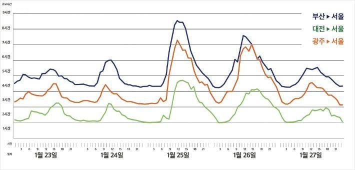 이런 불편한 상황을 반영한 경로 안내가 지금의 최적길이다. 최적길은 최단거리와 소요시간은 물론 도로등급(큰길, 샛길), 회전수, 통행요금, 실시간 교통정보 등 다양한 요소에 가중치를 매긴 뒤 이를 반영해 계산한다. 그리고 실시간 교통 정보도 동일한 구간을 가고 있는 차량들의 정보를 모아서 5분마다 반영한다. 회전 차로가 막히면 좌회전할 차량에게는 막히는 길로 직진할 차량에게는 뚫리는 길로 구분해서 안내가 가능해졌다.