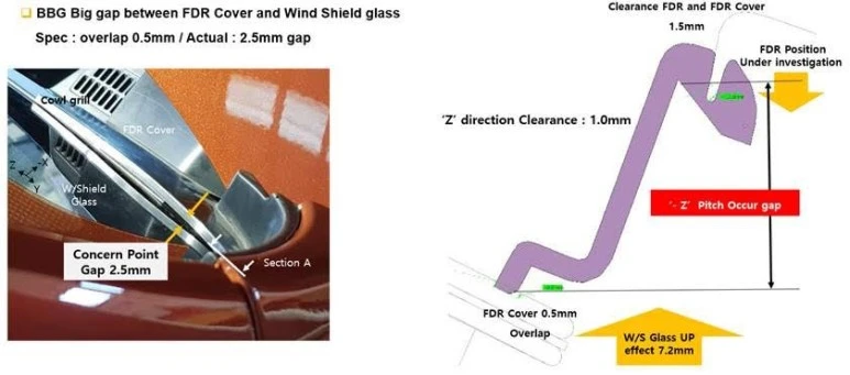 여기저기가 문제였습니다. 르노에서 만든 디자인을 닛산 구매 라인을 통해 중국 업체에서 납품 받아 동펑 공장에서 처음 생산해 보는데 처음부터 제대로 될 리가 없습니다. 10cm 정도 되는 틈의 간격이 0.5mm 정도로 일정하게 유지해야 하는데 한쪽에서 2.5mm 정도가 나오면 철판을 프레스해서 만든 바디 프레임부터 사출로 뽑아서 만든 플라스틱 파트, 창문에 들어가는 유리, 조립하는 순서는 어떻게 해야 하고 힘을 얼마나 주어야 하는지 까지 모든 절차를 다시 재 검토 해야 했습니다.