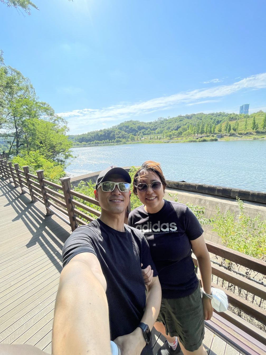 이렇게 운동하는 제 옆에는 함께 하는 아내가 있습니다. 사실 저희가 운동에 더 집중하는 이유 중에는 아내의 건강이 더 좋아졌으면 하는 바람도 있습니다. 그동안 혼자서 애 키우고 이런저런 일들 하느라 고생한 아내가 건강해지려면 제가 트레이너처럼 일단 모범을 보여야 하거든요. 그래서 늘어지기 쉬운 아침이지만 나가자고 재촉하고 하루를 함께 운동하면서 시작합니다.