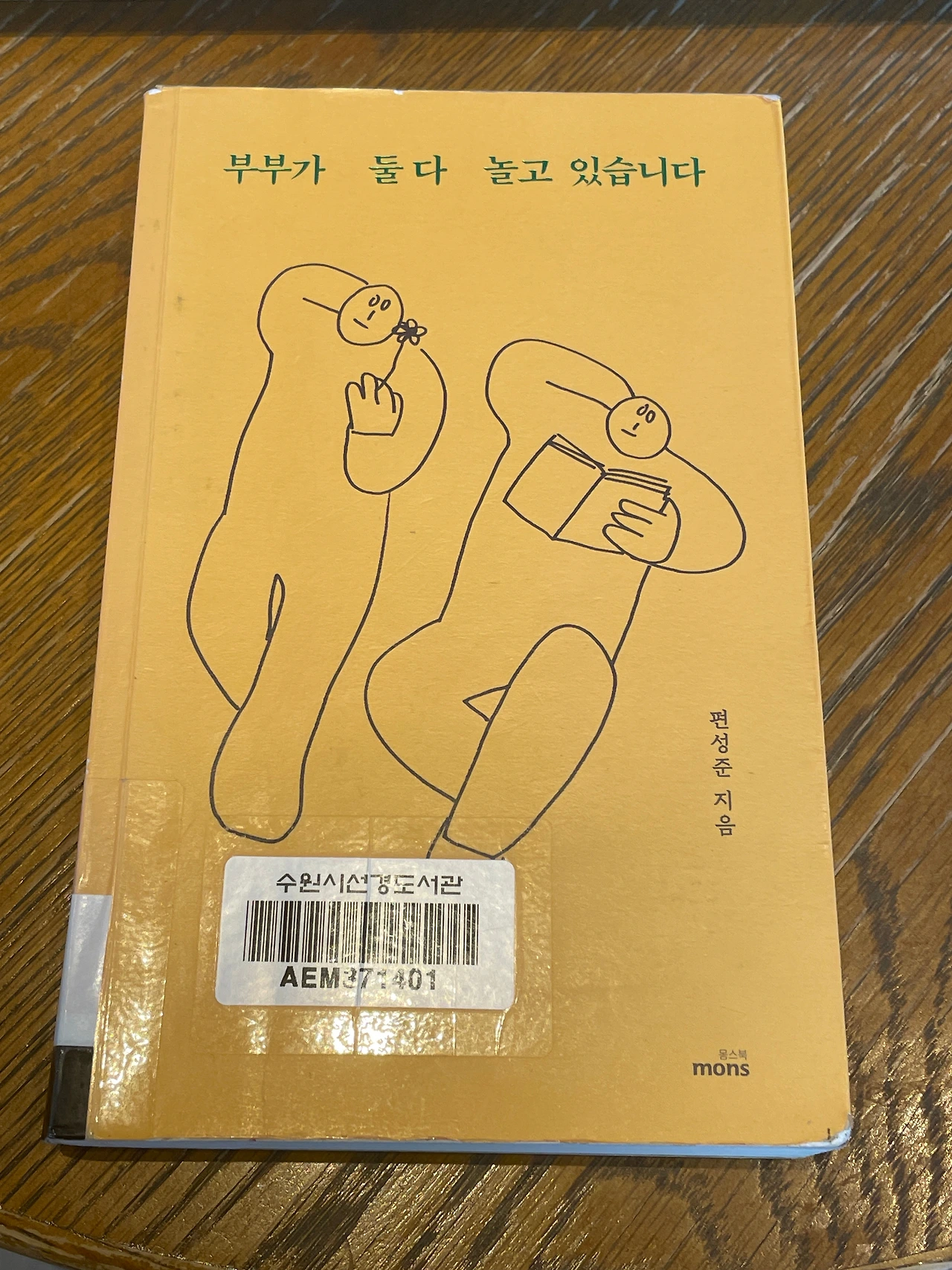 주변에 비슷하게 사는 사람이 없어 참고할 만한 레퍼런스가 없었는데, 도서관에서 문득 눈에 띄는 제목이 들어왔다. 그렇게 만난 "부부가 둘 다 놀고 있습니다."는 평생 독신으로 살 줄 알았던 20년 이상 경력의 카피라이터 편성준 씨가 출판 기획자이자 노는 것에 대한 생각이 비슷한 여자를 만나서 결혼하고 사는 이야기다. 그들은 그동안 남들이 원하는 것들을 하고 살아왔다며, 나처럼 퇴사하고 이제라도 스스로 원하는 것들을 하며 살아 보고 있다.